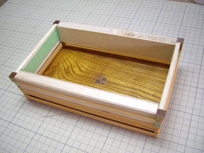 天板を差し込んで、ゴム輪で縛ります