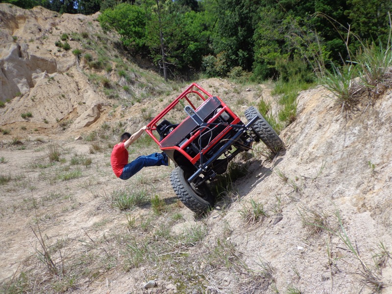 後どのくらい持つかと引っ張っているところ。全体重をかけてもしっかりタイヤが地面についています(*^^*)